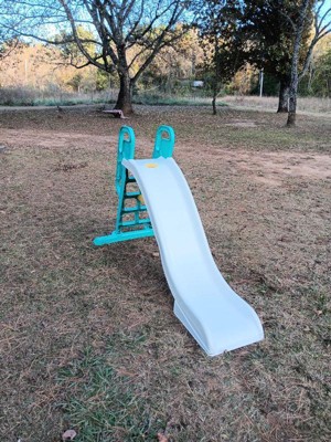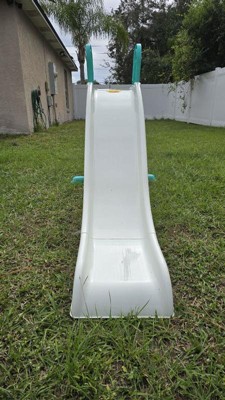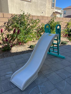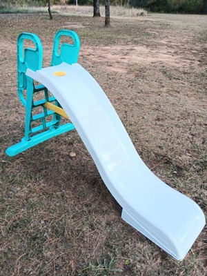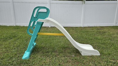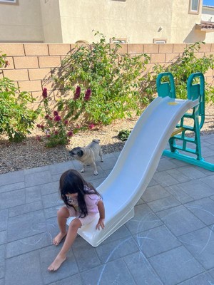 [This review was collected as part of a promotion.] My son loves this slide and so do we. The first thing that I loved is the was the ease of assembly. No tools needed and I was able to do it without the instructions. Every piece fits nicely together and it attached with included plastic nuts. That is a huge plus as we can assemble and put it away every season. It is light enough to carry around the yard but sturdy enough to hold the children’s weight. Very well built. It can also be used as a water slide when a hose is attached, but it’s too cold where we are to try that out just yet. Next summer will be lots of fun.