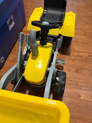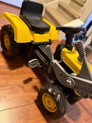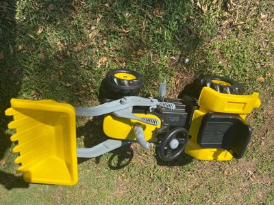 - Pedal-operated tractor with a functional front digger encourages imaginative play while enhancing motor skills