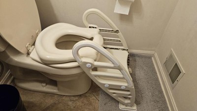 - Toilet training seat with adjustable ladder designed for toddlers ages 2 and up to encourage independent bathroom use