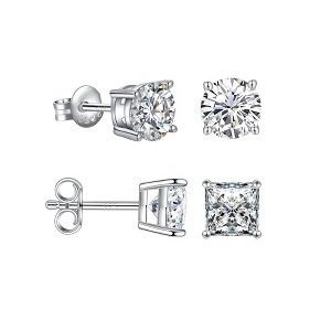 Sparkle and shine with our 2 Pack Moissanite Earrings. Made with sterling silver and stamped with 925 for quality. Featuring both round and square cuts of shimmering moissanite stones for a total of approximately 1.60CTW. Lead and nickel free for a worry-free wear. Elevate any look with these radiant earrings!