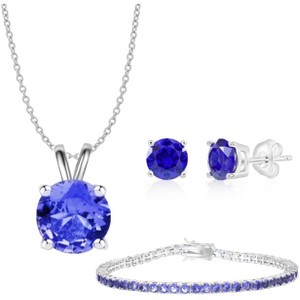This breathtaking Created Tanzanite Jewelry Set will elevate any outfit with its stunning features. The necklace and earrings are made of nickel-free sterling silver, while the bracelet is crafted from durable brass. With a necklace length of 18+2 inches and a bracelet length of 8 inches, this set is designed to fit comfortably. The created tanzanite stone sizes of 8mm and 4mm add a touch of sparkle to the set, making it the perfect addition to your jewelry collection.