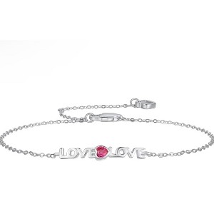 This Heart Love Bracelet features a 7 inch length with a 2 inch extender and a lobster clasp. The 5MM X 22.8MM love and heart charms are adorned with created red ruby stones. Made of brass, this bracelet is lead and nickel free, making it safe for sensitive skin. Add a touch of love to any outfit!