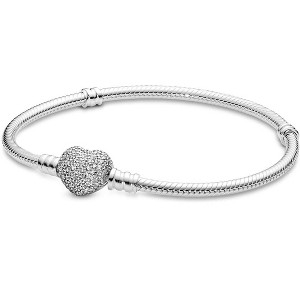This Micro Pave Crystal Heart Charm Bracelet creates a look of elegance with its silver finish and heart charm set with dazzling crystals. With a heart clasp closure, this bracelet is made with quality craftsmanship to last a lifetime. It also has the capacity to fit an additional 15 charms.