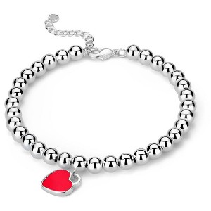 Bring a little love to your wardrobe with this classic beaded heart bracelet. Constructed from brass based metal, it is lead and nickel free and features a 6.5 inch chain with a 2 inch extender and a lobster clasp closure. An additional heart charm adds the perfect final touch.