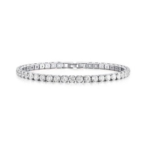 "Enhance your style with our Gem Jewelers Round Tennis Bracelet! Made with brass and plated with 14K gold, this lead and nickel free bracelet features 5mm round stones for a touch of elegance. Measuring at 7.5 inches, it's the perfect addition to any outfit. Get yours today and elevate your look!"