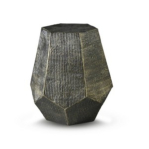 The Donato hexagonal End Table, constructed from hand-stamped iron, features architectural lines that appear to be carved by nature. An oil-rubbed brass finish shimmers in the light, making the table the jewel of your living space. Pair with the Donato Cocktail Table (sold separately) for a complete living room package. Your purchase includes one end table.