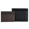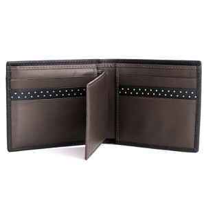 Polished cowhide with accent color interior. The Alpha RFID Blocking Convertible Thinfold wallet features perforated accent pockets that show the RFID blocking material, designer striped lining, 6 credit card slots, 2 utility pockets, a removable front pocket slim billfold with 6 credit card slots, 2 utility pockets, exterior removable card case with 3 card slots and an I. D. window.