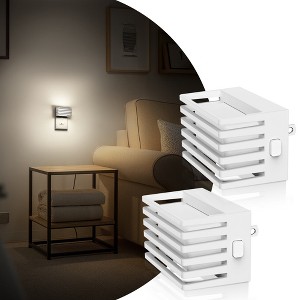 This 2-pack of 1W plug-in night lights features a white fence-style design with top and bottom illumination, perfect for bedrooms, hallways, or nurseries. Each night light emits soft 5000K white light, providing comfortable visibility during nighttime. The built-in light sensor and three-level button dimming ensure customizable brightness while remembering settings after power off.