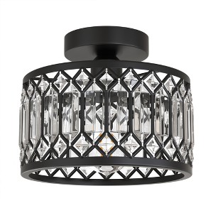 Elevate your interior with this elegant 1-light semi-flush mount ceiling fixture featuring matte black finish and striking triangular crystal accents. The drum-shaped shade adds a soft, diffused glow while highlighting the sophisticated design. Equipped with an E26 socket and non-integrated bulb setup (bulb not included), it allows easy bulb customization and replacement. Perfect for bedrooms, hallways, or living spaces seeking a blend of modern style and classic elegance.