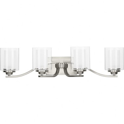 - 4-LIGHT MODERN DESIGN: This brushed nickel vanity light combines crystal and glass for a sleek, contemporary look.