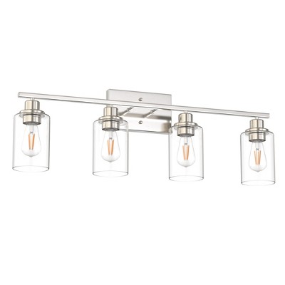 Elevate your space with the 28 in. 4 Light Matte Black Industrial Modern Cylinder Vanity Light. Combining sleek industrial design with modern elegance, this fixture features a matte black finish and clear glass shades. Perfect for any room, it adds a stylish and functional touch to bathrooms, bedrooms, living rooms, hallways, offices, dining rooms, entryways, and basements.