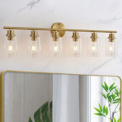 DORESshop 4-Light /6-LightBlack and Gold Vanity Light with Clear Cylinder Glass Shades, Square Plate and Rod Design, E26 Sockets