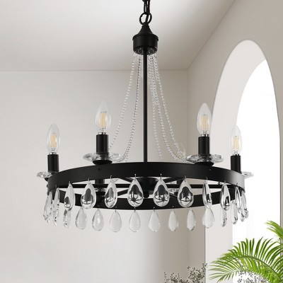 Bring rustic elegance to your home with this 6-light matte black chandelier featuring charming white wood bead accents. Designed with E12 sockets and a non-integrated bulb configuration (bulbs not included), this fixture combines farmhouse warmth with modern industrial flair. The matte black finish complements the natural wood beads, creating a balanced, stylish centerpiece ideal for dining rooms, living areas, or entryways. Easy to install and customize with your preferred bulbs, this chandelier adds character and cozy illumination to any space.