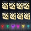 Illuminate your outdoor space with this versatile solar wall light, offering both warm white and RGB color-changing lighting options. Designed with 5 powerful LEDs, this light is perfect for decorating your garden, porch, driveway, or fence. The light automatically charges during the day and provides up to 12 hours of illumination at night, making it an eco-friendly and cost-effective solution. Its durable waterproof design (IP44) ensures it withstands all weather conditions. Whether you want to set a cozy ambiance with warm white light or create a festive atmosphere with vibrant colors, this solar wall light is an ideal addition to any outdoor setting.