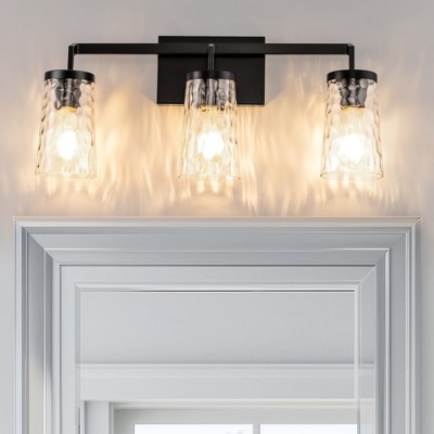 DORESshop Elegant 25 in. 3-Light Matte Black Bathroom Vanity Light, Modern Farmhouse Wall Sconce with Open Globe Glass Shades