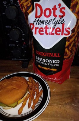 [This review was collected as part of a promotion.] The Dot's Homestyle Pretzels Original Seasoned Pretzel Twists are the perfect addition to a sandwich or just a snack for in between meals. The twists have the best tasting bold and savory seasonings. The Cruncky fresh texture is one I crave. Each twist is on the big side. They are chewy and a pallet pleaser. I detect no stickiness. My family enjoy these yummy pretzels.