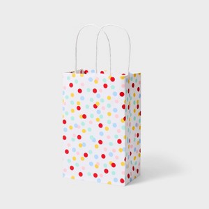 I absolutely love this small polka dot gift bag! It is the perfect size for small gifts and the polka dot design is so adorable. The quality of the bag is excellent, and it is sturdy enough to hold a variety of items. The colors are vibrant and the polka dots add a fun and stylish touch. It's the perfect way to present a gift to someone special. I highly recommend this small polka dot gift bag for any occasion!