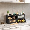 Double Bread Box, Bamboo Kitchen Countertop Organizer, Large Capacity Bread Rack With Window
