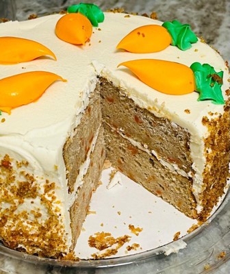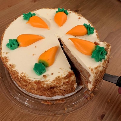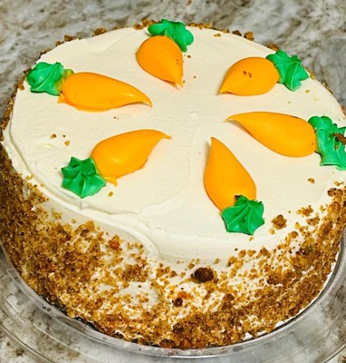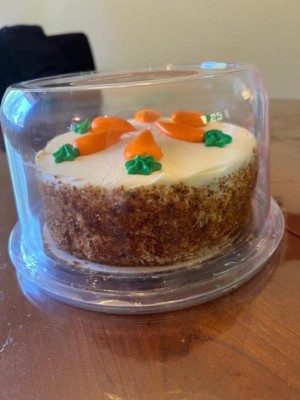 [This review was collected as part of a promotion.] If your looking for something last minute this will definitely get the job done. The carrot cake was extremely firm and did need to sit out for about 30 minutes before serving to allow the frosting to become soft. The frosting was the best part, a sweet cream cheese frosting that was generously applied. The cake itself was a bit too dense and did not have the stronger spice and carrot flavor I had hoped for. Overall the cake did look very pretty on the table and did seem to be enjoyed by out guests.