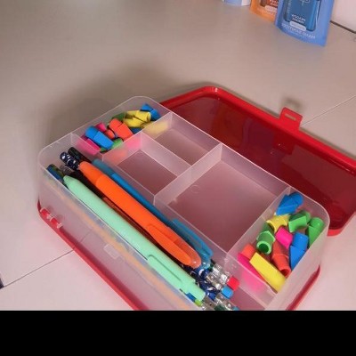 Enday Large Capacity Double Deck Pencil Box - Plastic With 12 Compartments, Snap-Tight Lid, Hard Case Storage Organizer