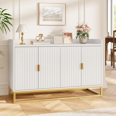 Double Door MDF Storage Cabinet with Silver Knobs, Mid-Century Style
