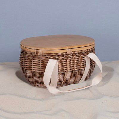Double Handle Woodchip Basket with Liner - Perfect as Toy Organizer or Storing Fresh Fruits, White