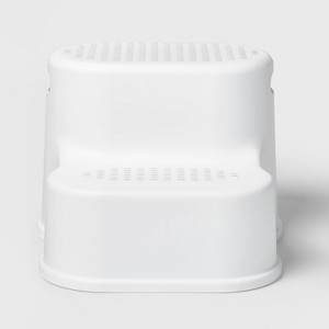 From potty training to using the sink, the Double-Step Stool from Pillowfort™ adds convenience to your kiddo's daily routine. Featuring a double-step design, this potty-training stool makes your kiddo comfortable going to the bathroom by themselves and makes it easier for them to reach the adult toilet seat or sink. The anti-slip surface on the steps helps prevent slips or falls, while the slightly curved design easily fits around your toilet seat. Plus, it features two integrated handles at the sides that make it easy to carry.
