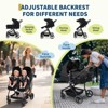 - 【Customizable Comfort for Growing Kids】Double stroller fits newborns to 5-year-olds. Each seat has multiple recline modes (sleeping, resting, sitting) for comfort—ideal tandem stroller for siblings of different ages.