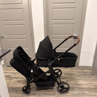 I absolutely love this double stroller. It glides effortlessly, making outing with my two little ones a breeze. The spacious seats provide ample comfort, and the adjustable canopies shield them from the sun. Plus, the storage basket underneath is perfect for carrying all the essentials we need for a day out. Highly recommended 👍👍👍
