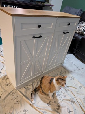 Double Tilt Out Trash Cabinet, Kitchen Wood Trash Cabinet with Hideaway Drawers, for Kitchen Dining Living Room, Black