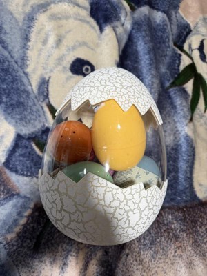 My kids were so excited to crack open the eggs and they were not disappointed! They have been having so much fun playing with brightly colored dough and making Dino shapes. This has really encouraged their creativity and an interest in dinosaurs. Would strongly recommend!
