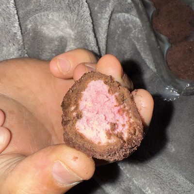No one in our family liked this. My teenage son who eats everything thought the raspberry portion did not taste good, I did not like the cocoa powder on the outside and my husband actually spit the entire thing out. Sorry, we are ice cream and dessert folks but this was not for us!
