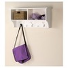 Perfect for townhouses and condos, the 36" Wide Hanging Entryway Shelf will help keep your gloves, hats, coats and jackets organized! Suitable for any front hallway, mudroom or home office, it’s two compartments have room for everything from baskets to books. Three large hooks provide sturdy storage for your outerwear, while two smaller hooks are ideal for scarves, purses and bags. Install it easily with our innovative hanging rail system.
