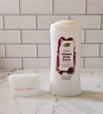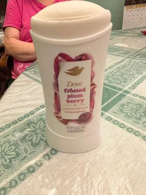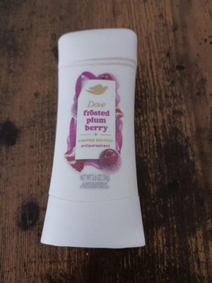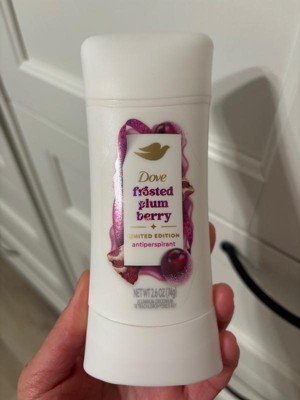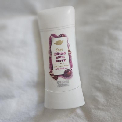 [This review was collected as part of a promotion.] The Dove Frosted Plum Berry Limited Edition Antiperspirant is an effective, refreshing, and long-lasting addition to my daily routine. Its pleasant aroma of plum combined with berry creates an exquisitely sweet, powdery scent that endures throughout the day. The formula provides effective protection against even my heavier sweating to keep me feeling dry, fresh, and confident throughout my busy days. It dries quickly and clears without leaving any sticky residues behind on my skin or stains on my clothes. It doesn't cause any irritation to my sensitive skin with its gentle and nourishing formula. I appreciate the ease of application with a tube deodorant and a conveniently sized tube for easier travel. I will definitely continue to use this effective antiperspirant formula and would recommend it. I received this product for free from Dove and Influenster for testing and review purposes.