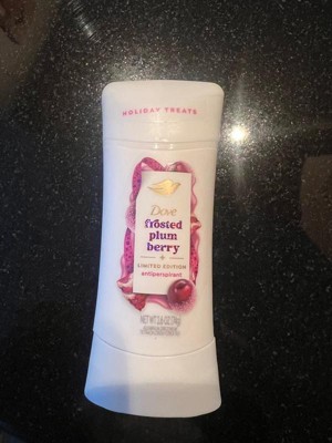 [This review was collected as part of a promotion.] Dove deodorant is my favorite. This glides on like butter and doesn’t leave cakey white residue on my armpits! I typically prefer floral scents for deodorant but this seasonal frosted plum berry scent is nice. I definitely get hints of berry but the notes are overall sweet to me, like a sugar cookie almost with berry secondary tones. Overall would definitely purchase in the future and would love to try different scents!