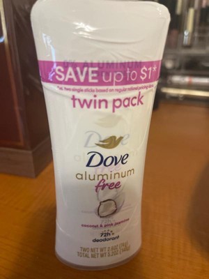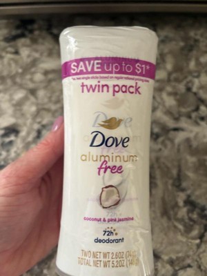 Dove Beauty Aluminum-Free Deodorant Stick Twin Pack - Coconut and Pink Jasmine - 2.6oz/2ct