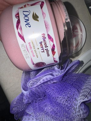 [This review was collected as part of a promotion.] The scrub has a thick, gritty texture just how a real sugar scrub should be. It’s packed with fine sugar granules that exfoliate deeply and evenly without scratching or irritating my sensitive skin. Unlike some scrubs that melt too fast or feel like they’re mostly oil, this one gives a truly satisfying exfoliation experience. I use it 2–3 times a week, especially on rough areas like elbows, knees, and the backs of my arms, and it always leaves my skin feeling baby soft and super smooth. What makes this scrub really stand out is the hydrating formula. It contains The sweet, fruity aroma of frosted plum and berries which leave my skin feeling not only exfoliated but also incredibly moisturized. After rinsing, my skin feels nourished and supple not greasy or sticky. It’s one of the few scrubs where I actually notice lasting hydration after the shower. I’ve even skipped lotion a few times afterward and my skin still felt soft all day. The packaging is both functional and cute. It comes in a sturdy plastic jar with a screw on lid that’s easy to open even with wet hands in the shower. You get a generous amount of product for the price 15oz of high quality scrub which lasts a surprisingly long time since a little goes a long way. It’s cruelty free, and Dove uses clean ingredients, which makes me feel good about using it regularly. Highly recommended.
