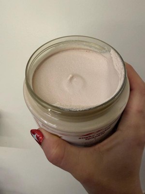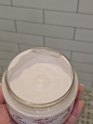 [This review was collected as part of a promotion.] I received this from influenster in exchange for my honest review. I like the simple packaging/labels. They're eye-catching but not overwhelming. The scent is super sweet in the jar & while using. There seems to be a sour like scent with the sweet while using & the scent is super strong. But afterwards the scent is a soft sweetness that is lasting. I love the exfoliation! My skin is SO soft & smooth after my showers! This has a fine grit to it, very satisfying. I want to try other scents that Dove has available because this one is very Christmasy, but I absolutely love the way my skin feels after using it!!