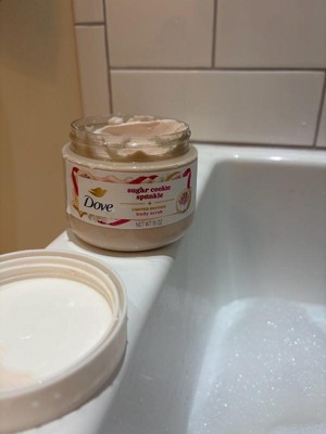 [This review was collected as part of a promotion.] The Dove Sugar Cookie Sprinkle Body Scrub is such a fun, cozy treat for your shower routine. The smell is delicious and comforting. The product applies easily and provides a gentle scrub. It helps smooth rough areas like dry elbows. The product rinses off easily and leaves you feeling clean.