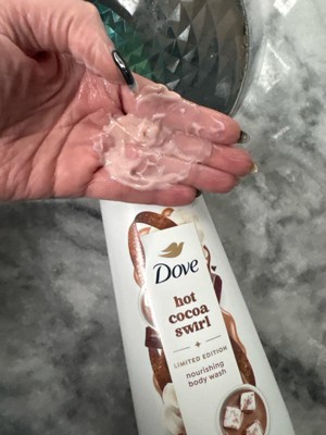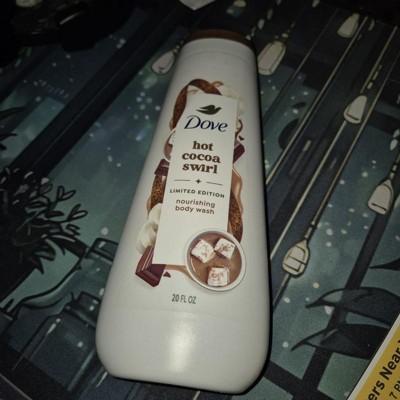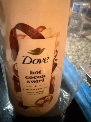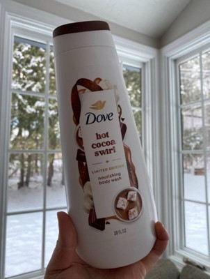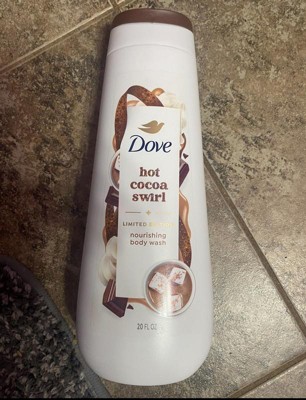 [This review was collected as part of a promotion.] Dove hot cocoa swirl nourishing body wash limited edition,this is one i would definitely stock up on its only available during the holidays! It smells so wonderful its like you are bathing in chocolate! It leaves you're skin feeling soft and so refreshing!it comes in a large20 oz bottle so it will last weeks! I will definitely purchase again!