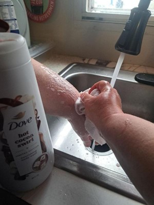 [This review was collected as part of a promotion.] I gifted this body wash to my 19 year old daughter. She absolutely loves it. It smells just like Hot Chocolate! It produces a wonderful creamy lather that is nourishing for your skin. Everything you expect from a Dove product. Lovely for the winter time. Makes showering a sweet treat!