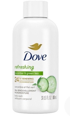 Dove Refresh 24-Hour Lotion-Soft Skin Mini Body Wash - Cucumber and Green Tea - Travel Size - 3 fl oz