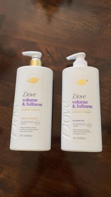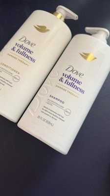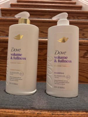 - ALL DAY VOLUME AND FULLNESS: Dove Volume & Fullness Shampoo and Conditioner system is designed for flat hair. Infused with Biotin , the Dove Volume & Fullness System leaves hair with all-day body.
