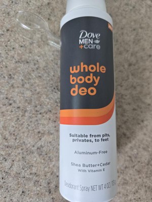 - WHOLE BODY ODOR CONTROL: Dove Men+Care Whole Body Deo deodorant spray is for your entire body—so you’ll get all-day odor protection exactly where you need it.