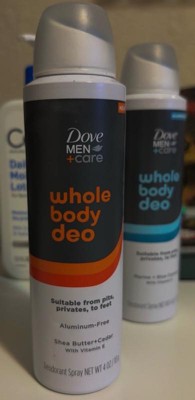 - WHOLE BODY ODOR CONTROL: Dove Men+Care Whole Body Deo deodorant spray is for your entire body—so you’ll get all-day odor protection exactly where you need it.