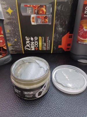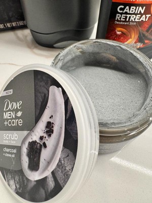 - SCRUB.CLEANSE.MOISTURIZE: Dove Men + Care Lump O’ Charcoal Body & Face Scrub delivers gentle and thorough exfoliation, cleansing deeply to remove dead, dry skin and wash away dirt and grime, leaving skin hydrated.