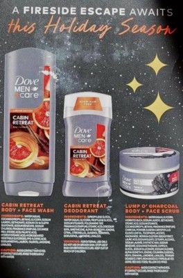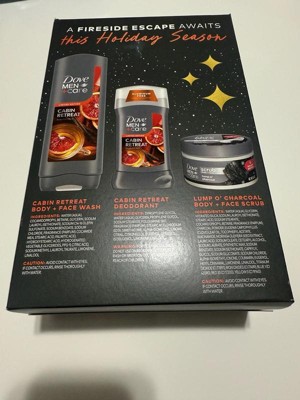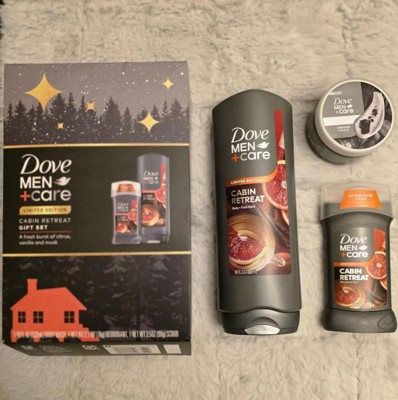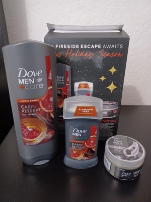 - TREAT HIM TO A WINTER ESCAPE – WITHOUT LEAVING HOME. This holiday season, give him a moment of calm from the #1 Dermatologist recommended brand. Inspired by a cozy mountain getaway, our Dove Men+Care Cabin Retreat Gift Set is designed to elevate his