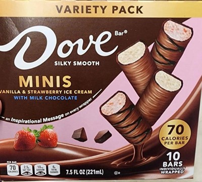 DOVE Minis Frozen Ice Cream Bars Variety Mix Vanilla and Strawberry Ice Cream With Milk Chocolate - 10ct/7.5 fl oz