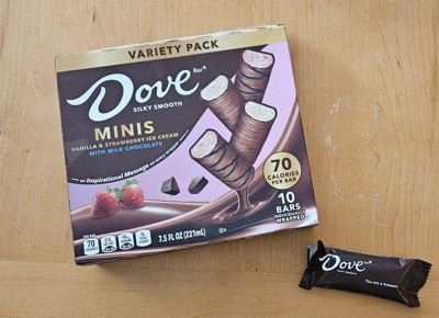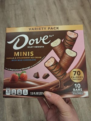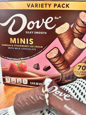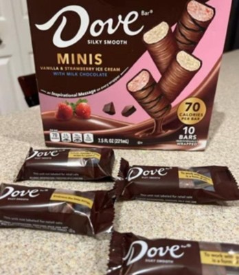 [This review was collected as part of a promotion.] OBSESSED with these Dove Minis! Vanilla & strawberry ice cream wrapped in creamy milk chocolate = perfection. Smooth texture, real flavor, and the mini size means no guilt (but good luck stopping at one ). The package is sleek and appealing. Individually wrapped so they’re always fresh!