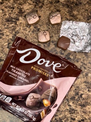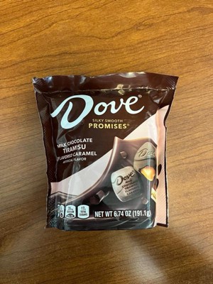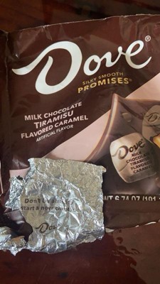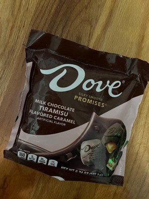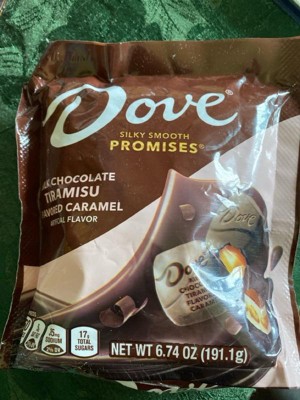 - Contains one (1) 6.74-ounce candy bag of DOVE PROMISES Chocolate Tiramisu Caramel Candy